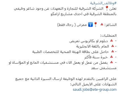 وظائف الشرقية Ksa On Twitter وظائف الشرقية تعلن الشركة الشرقية للتجارة و التعهدات عن وجود في مشاريع ارامكو ممرض رجال Saudi Jobs Ete Group Com