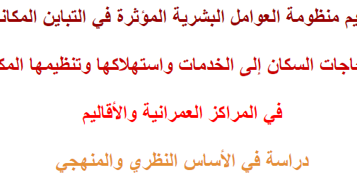 الجغرافيا دراسات و أبحاث جغرافية تقييم منظومة العوامل البشرية المؤثرة في التباين المكاني في حاجات السكان إلى الخدمات واستهلاكها وتنظيمها المكاني في المراكز العمرانية والأقاليم دراسة في الأساس النظري والمنهجي