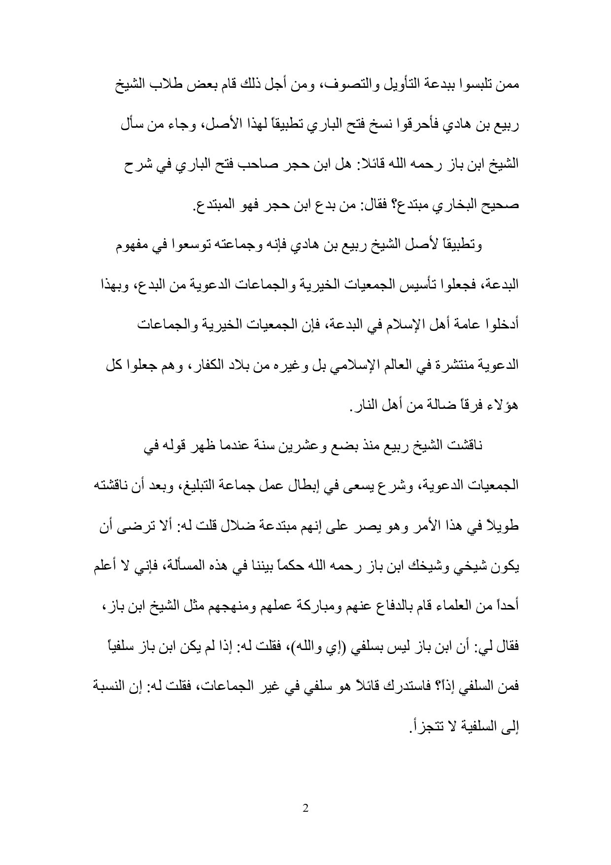 م نظر السلفية المعاصرة مهاجم ا مؤسس المدخلية منهجه فرق بين المسلمين النهار