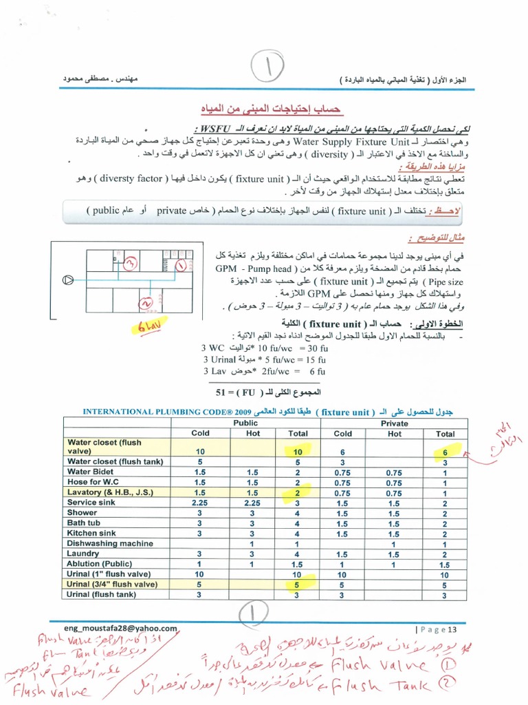 Wsfu حساب اقطار مواسير المياة للمبني Pdf