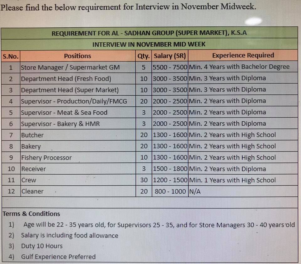 Requirement For Al Sadhan Group Supermarket Ksa Gulf Jobs Work Abroad