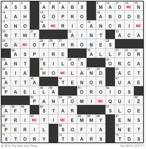 New York Times Thursday September 19 2019 Crossword Puzzle Solutions Clues And Answers